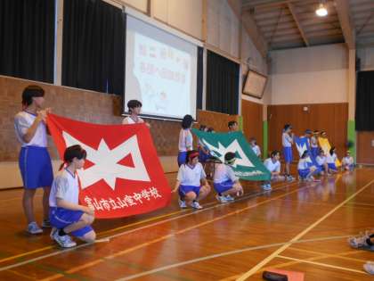 体育大会結団式・その3 公開日 2024/07/22 更新日 2024/07/22 生徒会活動 7月22日(月) 1限 団長が熱い決意表明を行っています。 団リーダーとして、団員140名余りを牽引してくれるでしょう。 (写真 上:青龍団 中:緑鷲団 下:団旗披露)