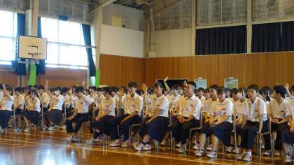 生徒集会・その2 公開日 2024/07/23 更新日 2024/07/23 生徒会活動 7月23日(火) 1限 生徒会執行部が脚本、演出した闇バイトについての動画を全校生徒で視聴しました。 出演生徒の演技力が素晴らしかったです。 その後、生徒指導主事から、1学期の振り返りと夏休み中に気を付けてほしいことの話がありました。 (写真 上:闇バイトについて動画視聴) (写真 中:生徒指導主事からの話 下:生徒の様子)