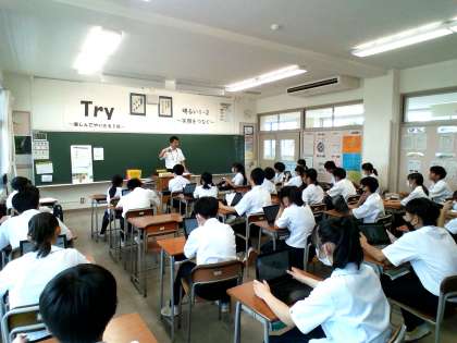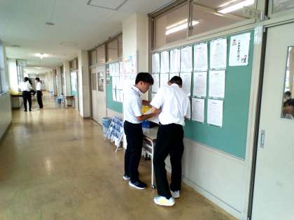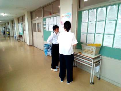 1年・学活・その1 公開日 2024/07/24 更新日 2024/07/24 1学年 7月24日(水) 3限 今学期最後の学活の様子です。 通知表をもらったり、夏休みの学習にクロームブックを活用するための説明を受けたりしています。 通知表を受け取る際、担任から1学期を振り返ってアドバイスを受けています。 1学期の通知表の結果を2学期の学習に役立てましょう! (写真 上:1年1組 中:1年2組 下:1年3組)