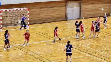 県民体育大会・女子ハンドボール 公開日 2024/07/27 更新日 2024/07/27 部活動 7月27日(土) 女子ハンドボール部から6名の生徒が富山市Cチームに選抜され、射水市Aと対戦しました。 チームメイトと勝利を目指して力を尽くしている姿が素敵でした。
