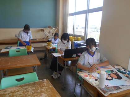 8月1日(木)の部活動・その4 公開日 2024/08/01 更新日 2024/08/01 部活動 8月1日(木) 9:30 美術部は、真剣に作品づくりをしています。 部員と色合いを相談したり、顧問の先生からアドバイスをもらったりしていました。 作品の完成が楽しみです。
