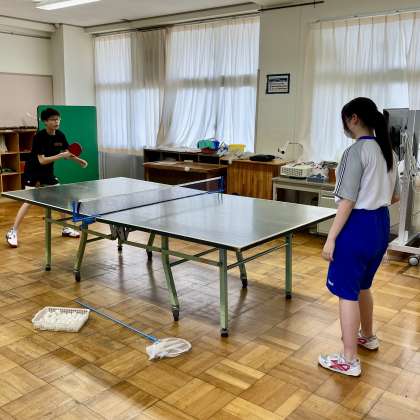 卓球部は、今日も教室を借りて練習に励んでいます。