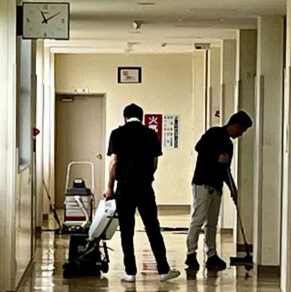 朝から業者の方に、2,3階のワックスがけをしていただきました。