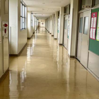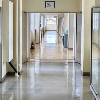 昨日、業者の方に廊下のワックスがけをしていただいたので、廊下はピッカピカです。