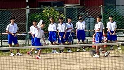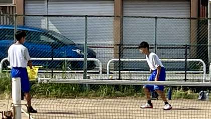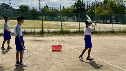 ソフトテニス部は、男子だけなので、両面を使って練習しています。