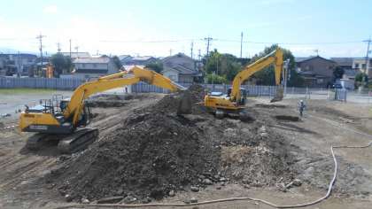 8月8日(木) 体育館改築工事は、重機による掘削が進められています。 暑い中、お疲れさまです。