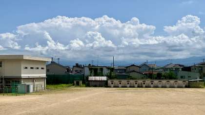 学校はヒッソリとしています…… 公開日 2024/08/09 更新日 2024/08/09 山室中学校のページ 8月9日(金) 11:00 気温は31度、天気は晴れ。 日差しが届いて、きびしい暑さになってきました。 東の空に、モクモクとした積雲がきれいに見えます。(写真) 今日は、先生方の研修会のため部活動がなく、学校はヒッソリとしています。