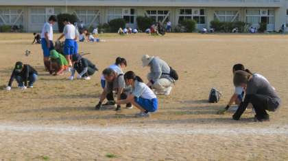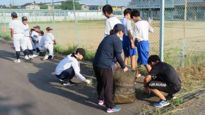 8月24日(土) 7:00 テニスコートのまわりの草は、なかなか抜けなくて大変でした。