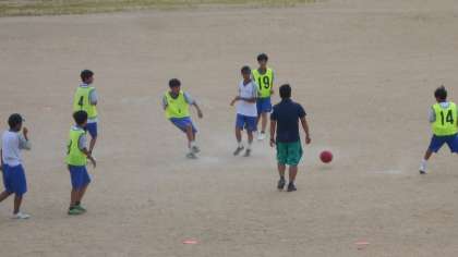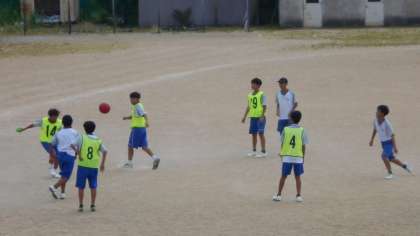 顧問の先生も生徒と一緒にプレイし、パスの仕方等の声掛けをしていました。