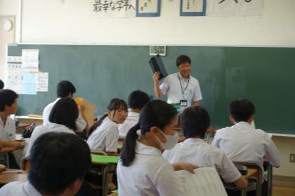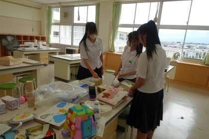 3年・学活・その2 公開日 2024/08/27 更新日 2024/08/27 3学年 8月27日(火) 3限 (写真 上:3年4組 中:3年5組) (写真 下:家庭科室に家庭科の宿題を提出している様子)
