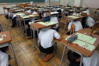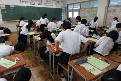 3年・シェイクアウト訓練 公開日 2024/08/30 更新日 2024/08/30 3学年 8月30日(金) 3限 9月1日「防災の日」にちなみ、大地震を想定した「シェイクアウト訓練」を行いました。 放送を聞いて、すばやく机の下に避難することができました。 (写真 上:放送による警報を聞き、すばやく避難行動を起こします) (写真 中:しっかりと机の下に避難できています) (写真 下:担任も教卓の下に避難しました)