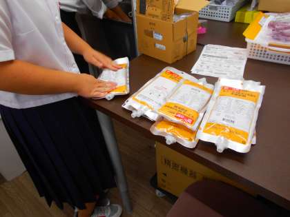 廃棄する薬の中身を捨て、容器を丁寧に畳んでいます。