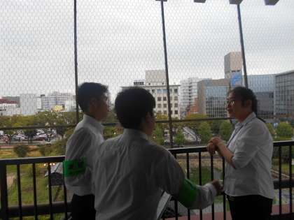 天守閣でバリアフリーの考え方がどう生かされているか話し合う姿も見られました。
