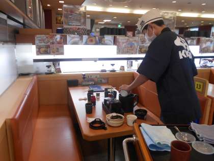 お客様が帰られた後、素早くワゴンを運び、片付けをしていました。