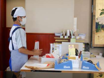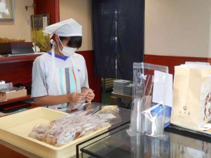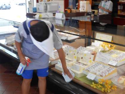 2年・14歳の挑戦・2日目・その13 公開日 2024/09/03 更新日 2024/09/03 2学年 9月3日(火) 13:30 「社会に学ぶ『14歳の挑戦』の活動の様子を紹介します。 「中尾清月堂 富山店」での活動の様子です。 ケースの清掃や商品の梱包を行っています。 職員の方にやり方を教えてもらい、丁寧に仕事の取り組んでいました。