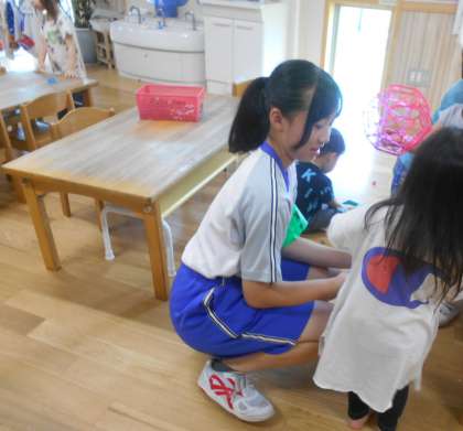 2年・14歳の挑戦・2日目・その16 公開日 2024/09/03 更新日 2024/09/03 2学年 9月3日(火) 14:30 「社会に学ぶ『14歳の挑戦』」の活動を紹介します。 「わかくさ保育園」での活動の様子です。 毎日違った年齢の教室に行き、園児と関わっています。 生徒たちは「大変だけど、子どもたちがかわいいから元気が出る」と話していました。