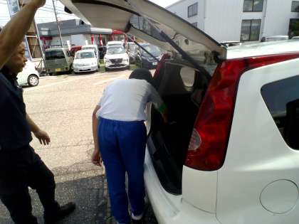 2年・14歳の挑戦・3日目・その3 公開日 2024/09/04 更新日 2024/09/04 2学年 9月4日(水) 10:45 「社会に学ぶ『14歳の挑戦』」の活動を紹介します。 「北陸車検」での活動の様子です。 車のメンテナンス作業をしています。 タイヤ交換に挑戦したり、専用の器具を使って車内の清掃をしたりしています。