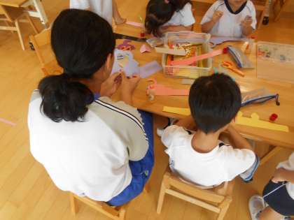 2年・14歳の挑戦・4日目・その7 公開日 2024/09/05 更新日 2024/09/05 2学年 9月5日(木) 11:30 「社会に学ぶ『14歳の挑戦』」の活動を紹介します。 「いちい保育園」での活動の様子です。 懐いている園児も多く、必要な手助けを多くしていました。 明日で活動が終わるのが寂しそうなくらい、元気に活動していました。
