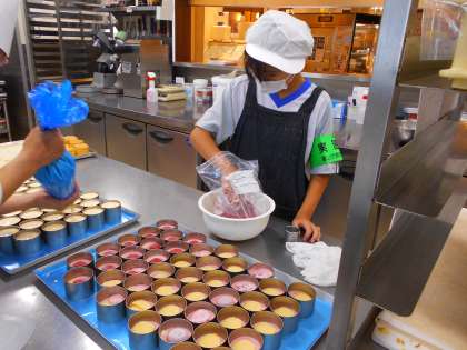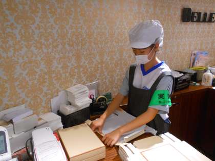 2年・14歳の挑戦・4日目・その10 公開日 2024/09/05 更新日 2024/09/05 2学年 9月5日(木) 11:00 「社会に学ぶ『14歳の挑戦』」の活動を紹介します。 「パティスリー ヴェルフヲンス」での活動の様子です。 お菓子の箱作りやケーキの仕上げ作業を真剣に行っています。 一つ一つの作業を丁寧に行い、職人のような仕事ぶりです。