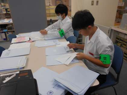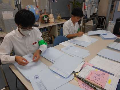 封筒に宛先ラベルを貼る作業を黙々としていました。