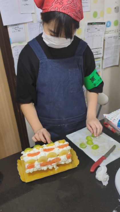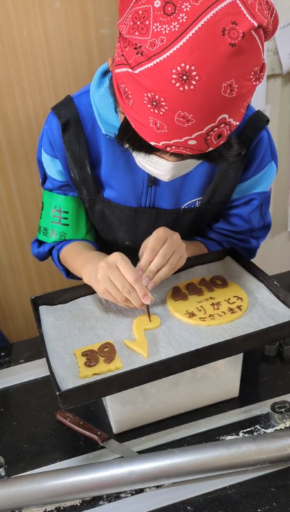 2年・14歳の挑戦・4日目・その24 公開日 2024/09/05 更新日 2024/09/05 2学年 9月5日(木) 14:45 「社会に学ぶ『14歳の挑戦』」の活動を紹介します。 「おかし屋さん くるる」での活動の様子です。 ロールケーキ屋とシフォンケーキを作っています。 生地やクリームもすべて自分たちで作りました。 家族に日頃の感謝を込めて一生懸命作りました!