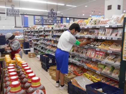 品出し作業や野菜の袋詰め、値札シール貼りなどの作業をしました。