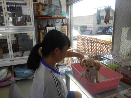 2年・14歳の挑戦・5日目・その11 公開日 2024/09/06 更新日 2024/09/06 2学年 9月6日(金) 14:00 「社会に学ぶ『14歳の挑戦』」の活動を紹介します。 「にのみやペットセンター新庄店」の活動の様子です。 チワックスの子犬のお世話をしている様子です。 商品の拭き掃除や子犬のお世話等、貴重な体験をさせてもらいました。