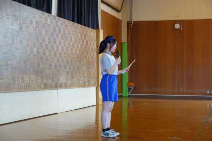 (写真 中:体育大会実行委員長 稲村さんの挨拶)