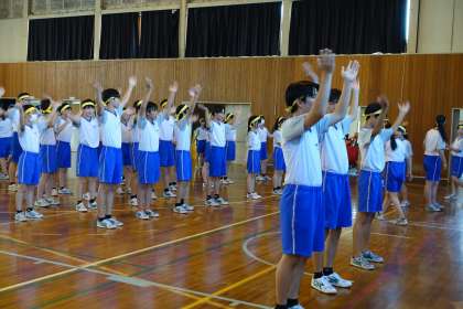 リーダーの指導の下、どの団も元気に楽しく、気合いを込めて練習していました。