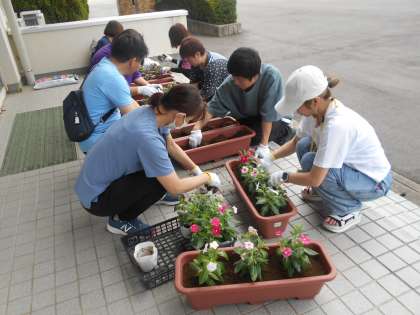 PTA・「プランターの花植え」 公開日 2024/09/07 更新日 2024/09/07 PTA 9月7日(土) 8:40 3学年のPTAは、プランターの花植えを行いました。 色とりどりの花のお陰で生徒玄関が明るくなりました。 活動されたPTA役員の方々、ありがとうございます。 大切に育てていきます!