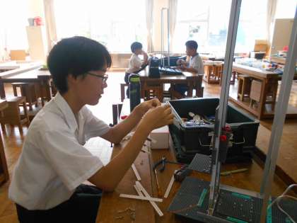 9月7日(土)の部活動・その5 公開日 2024/09/07 更新日 2024/09/07 部活動 9月7日(土) 9:30 コンピュータ部が、ロボットコンテストに向けて、ロボットを製作しています。 ロボットがスムーズに稼働するように、「作っては試し」を繰り返していました。