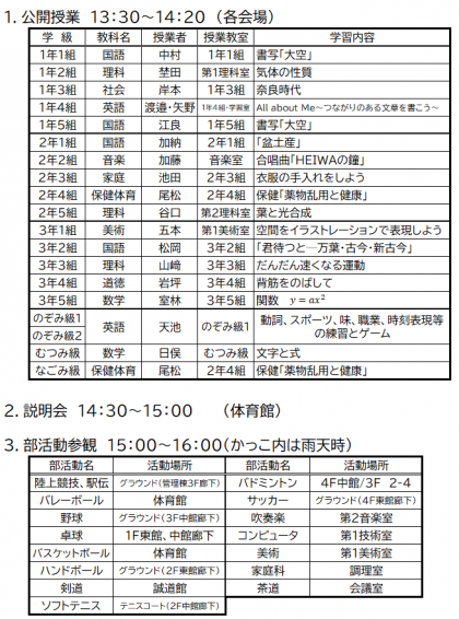 「富山市学校公開日」として、授業参観・学校説明会・部活動参観を下記のとおり実施します。