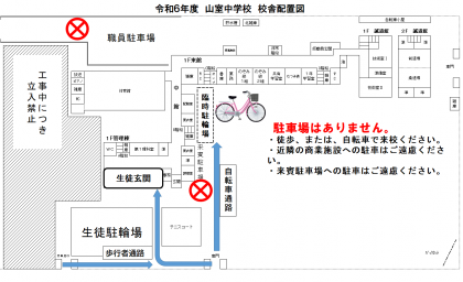 ・本校は現在、体育館の新築工事中につき駐車スペースがありません。