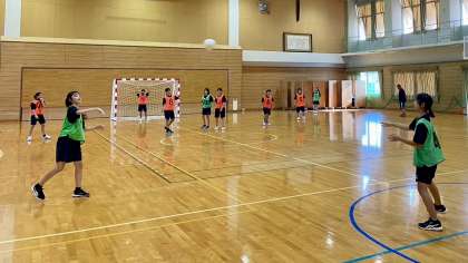 女子ハンドボール部は、新庄中で練習試合を行いました。