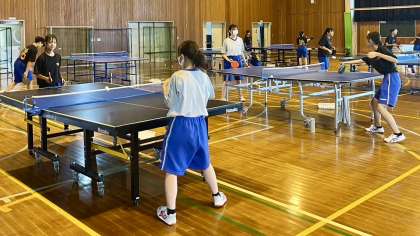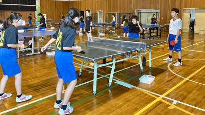 9月16日(月・祝)の部活動・その1 公開日 2024/09/16 更新日 2024/09/16 部活動 9月16日(月・祝) 9:00 卓球部は、新人大会に向けて試合形式で練習をしています。 互いにアドバイスしながら調整しています。