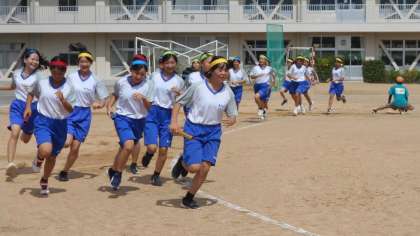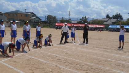 学年リレーや総合リレーのスタートやコース、テイクオーバーゾーン等の確認をしました。