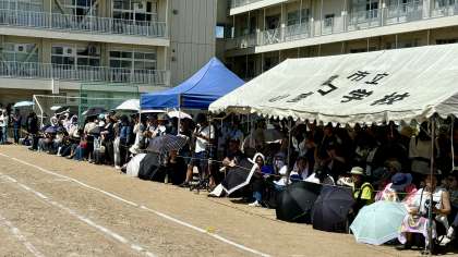 第78回 体育大会・その11 公開日 2024/09/20 更新日 2024/09/20 山室中学校のページ 9月20日(金) 9:50 平日にもかかわらず、雨天順延だったにもかかわらず、たくさんの保護者のみなさんに来ていただきました。