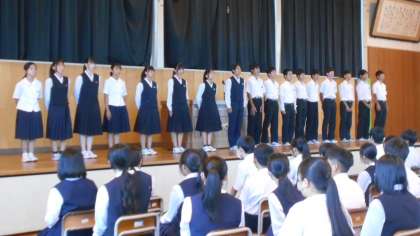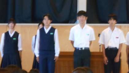 駅伝部・壮行会 公開日 2024/10/02 更新日 2024/10/02 山室中学校のページ 10月2日(水) 1限 今週末5日(土)に行われるの富山県中学校駅伝競走大会に出場する選手の壮行会を行いました。 17名の部員を代表して男女各部長が意気込みを語り、生徒会長と校長先生から応援のメッセージが伝えられました。 これまでの練習の成果を発揮してくれることを期待しています。 頑張れ!山中駅伝部!