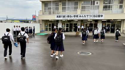朝の登校風景 公開日 2024/10/03 更新日 2024/10/03 山室中学校のページ 10月3日(木) 8:00 気温は19度、小雨が降っています。 半袖だと、ちょっと肌寒く感じます。 生徒が元気に登校してきました。