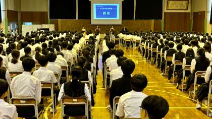 最後に、来月11月2日(土)に行われる合唱コンクール、第3学年・学年合唱曲「群青」を、オリジナルアレンジして披露していただきました。