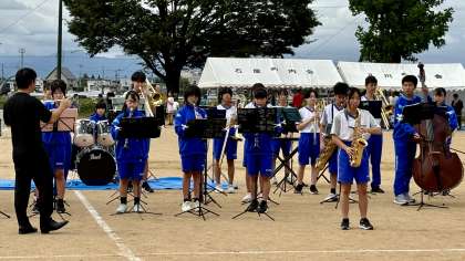 吹奏楽部・住民大運動会での演奏・その2 公開日 2024/10/06 更新日 2024/10/06 部活動 10月6日(日) 10:10 太田住民大運動会 吹奏楽部は、各校区での住民運動会で演奏します。 2番目は、太田小学校グラウンドです。