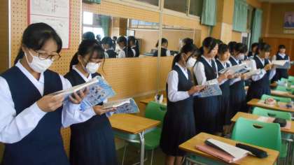 2年・音楽・歌唱 公開日 2024/10/08 更新日 2024/10/08 2学年 10月8日(火) 4限 2年5組の音楽は、合唱コンクールに向けて授業をしています。 「この地球のどこかで」の音程を正確にとれるように繰り返し練習していました。