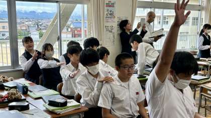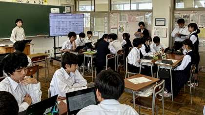 2年・理科・授業研究・その2 公開日 2024/10/08 更新日 2024/10/08 2学年 10月8日(火) 3限 後半で、「刺激に対するヒトの反応」を調べる実験を行いました。 各班、「刺激から反応までの時間はどのくらいか?」、座ってやってみたり(写真:中)、立ってやってみたり(写真:下)、いろいろ試行錯誤で実験しました。 実験結果から、刺激はどこを伝わり、どのように反応を引き起こすかについて考えました。