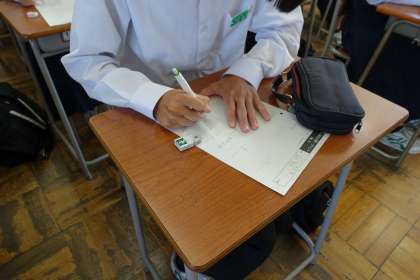 3年・「大成長スタディーブラザーズ」 公開日 2024/10/09 更新日 2024/10/09 3学年 10月9日(水) 終学活後 3年生は、「大成長スタディーブラザーズ」と銘打ち、個人の学力補充と学年全体の学力の底上げをねらい、5教科の確認プリントに取り組んでいます。 本日は数学でした。 (写真 上:真剣にプリントに取り組む様子) (写真 中:数学のプリントの内容) (写真 下:担任の先生の解説を聞いている様子)