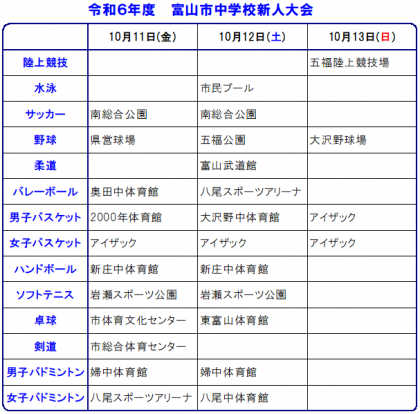 明後日11日(金)から「富山市中学校新人大会」が始まります。