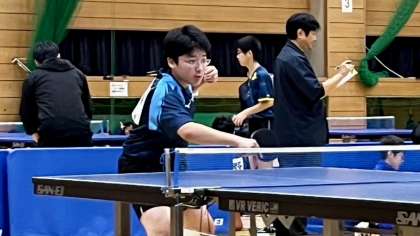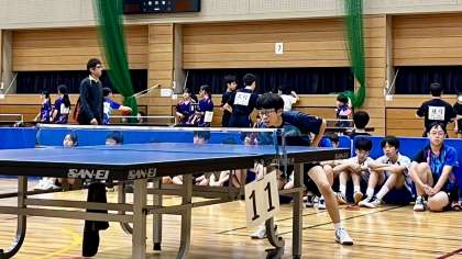 男子卓球部団体は、富大附属中に勝利し、呉羽中に敗退し、決勝トーナメントに進みます。