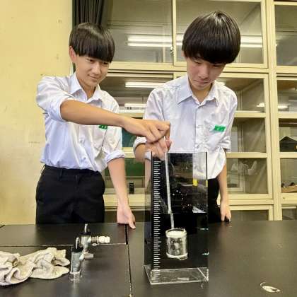 3年・理科・水圧 公開日 2024/10/18 更新日 2024/10/18 3学年 10月18日(金) 1限 3年1組の理科は、第3理科室で、「水中の物体にはたらく力」を調べる実験を行いました。(写真:左) ゴム膜のへこみ方(写真:右)の違いから、水圧の特徴を知ることができました。