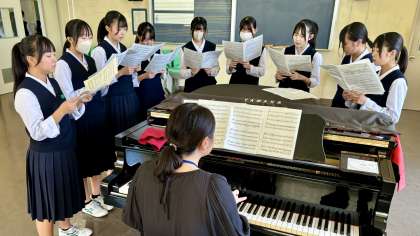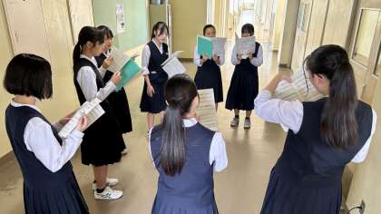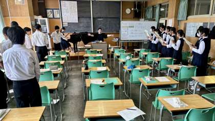 3年3組の音楽は、合唱コンクール曲「響き合う命」の練習です。