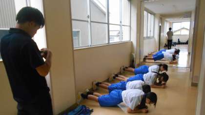 10月19日(土)の部活動・その1 公開日 2024/10/19 更新日 2024/10/19 部活動 10月19日(土) 9:30 ソフトテニス部は、あいにくの雨により、校舎内でトレーニングを行っています。 筋力トレーニングでは、時間が経つのをじっと耐えています。 苦しさの後には、やり切った達成感が待っています。 頑張れ!ソフトテニス部!