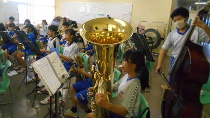 音程やリズムが合うように、集中して音を出したり、基礎打ちを行ったりしていました。